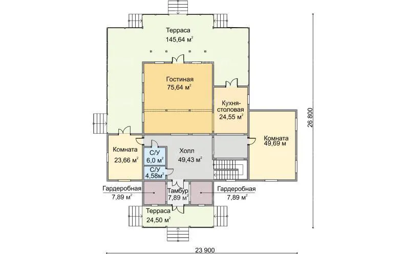 Этот дом обладает внушительными размерами, презентабельным внешним видом и богатым «внутренним миром». В нем найдется укромное место для каждого члена большой семьи. В то же время единое просторное пространство гостиной и кухни-столовой позволяет с комфортом проводить вечера в кругу семьи или в компании многочисленных друзей.