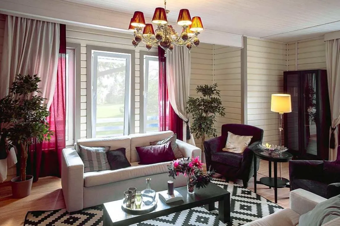 Красивый просторный дом идеален для загородной жизни большой семьи и приема гостей. Этому способствует наличие гостевой комнаты, нескольких изолированных спален,а также просторных помещений холла, гостиной и кухни-столовой. Из кухни есть выход на огромную террасу, где можно устраивать большие застолья и дружеские вечеринки.