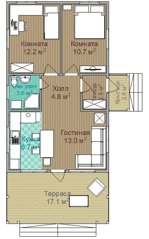 | Утепление Стены 150 мм; Пол 150 мм; Потолок 150 мм | Утепление Стены 200 мм; Пол 200 мм; Потолок 200 мм; Перегородки 100 мм |