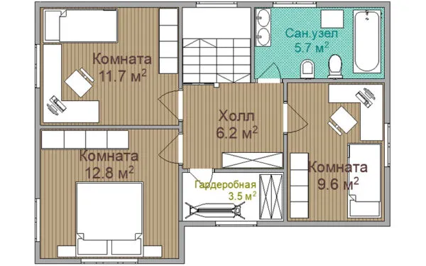«Аврора 11» — это светлый и просторный дом. Студийная планировка первого этажа позволит с комфортом проводить время большой семье. Размеры технического помещения позволяют оборудовать в нем котельную, соответствующую строительным нормам. В дополнительной изолированной комнате на первом этаже можно организовать кабинет, спальню для гостей или пожилых людей.